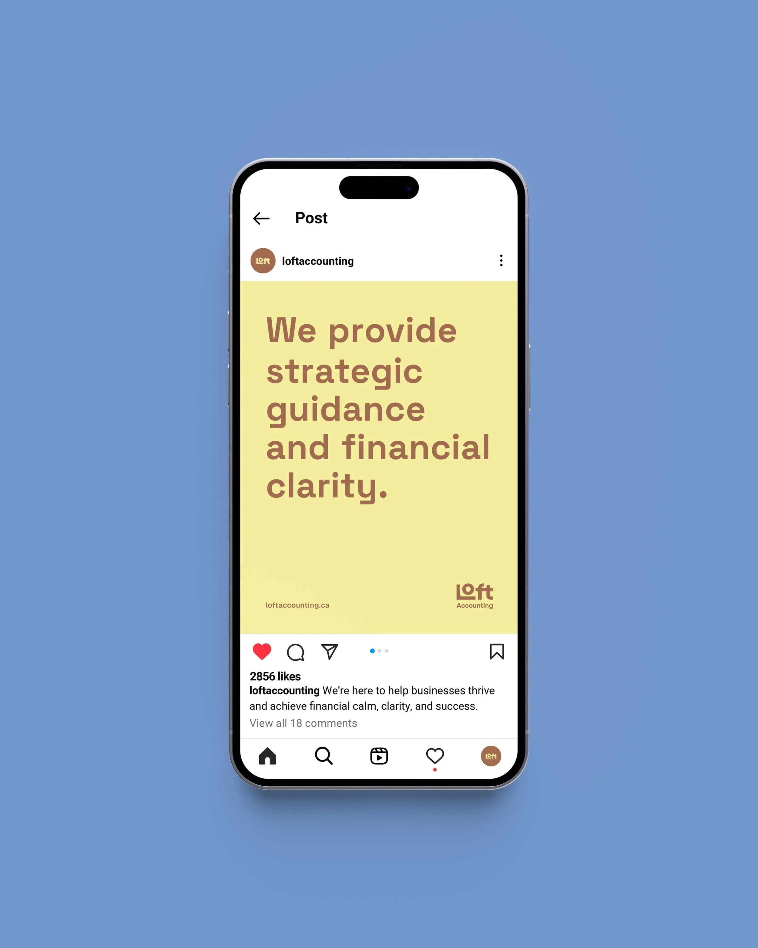 Loft Accounting & Advisory now has a clear, compelling brand foundation that reflects its purpose: to support entrepreneurs with practical expertise and values-driven guidance. With a refined identity and strategy, Loft is positioned to attract aligned clients, deepen relationships, and grow sustainably into the future.